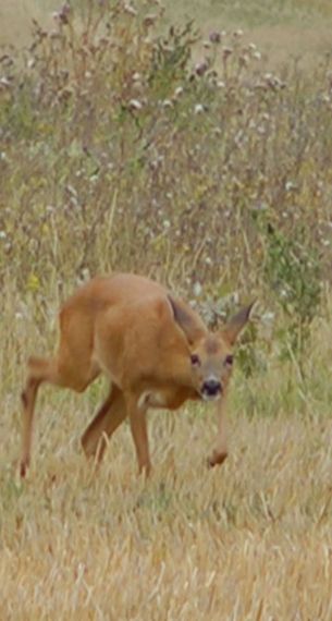 C’est un petit cervidé nerveux, tout en muscles, avec un train postérieur plus haut que l’antérieur, des cuisses arrières musclées et un cou élancé, il est fait pour la course et les bonds.